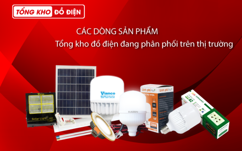 Chúng tôi tự hào về việc là nhà phân phối chính thức của các thương hiệu nổi tiếng như Vianco, Kaizen, Tatsu,... Tại Tổng kho đồ điện, có đa dạng các loại sản phẩm, thiết bị điện chiếu sáng như: LED âm trần, LED trụ, pha LED, tuýp LED, đui đèn cảm ứng, aptomat, ổ cắm, ấm siêu tốc,....